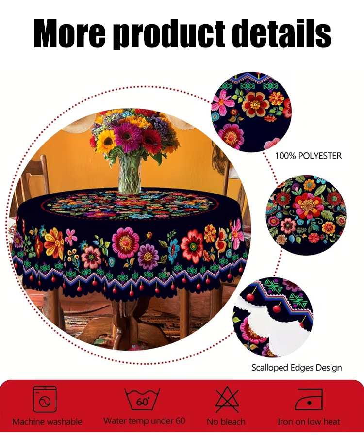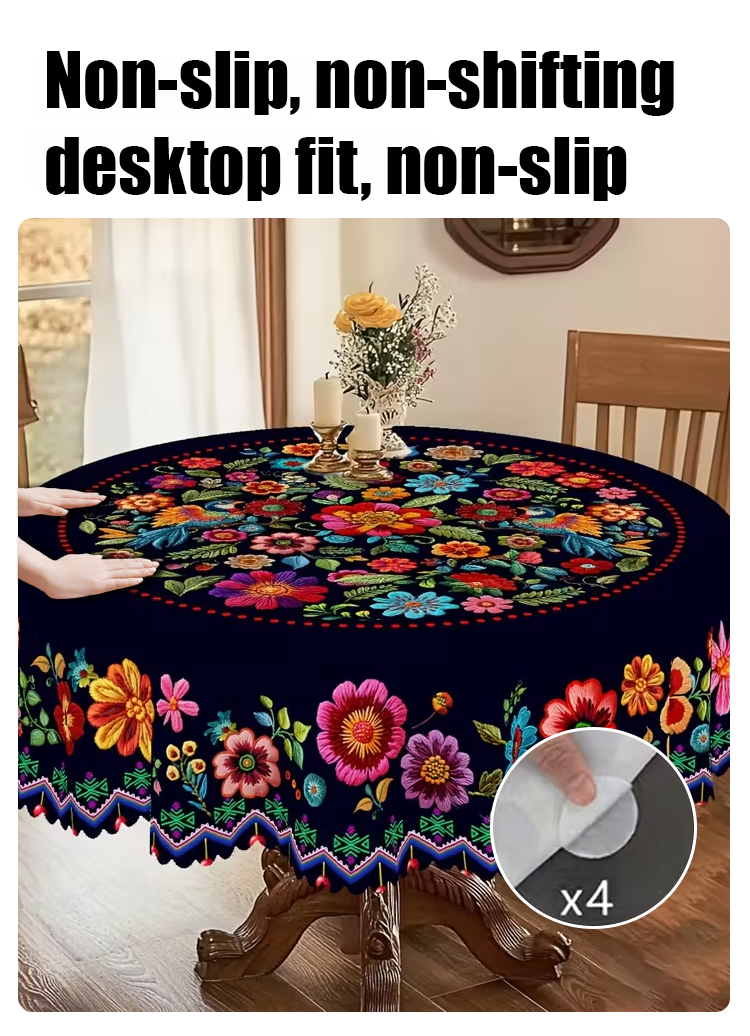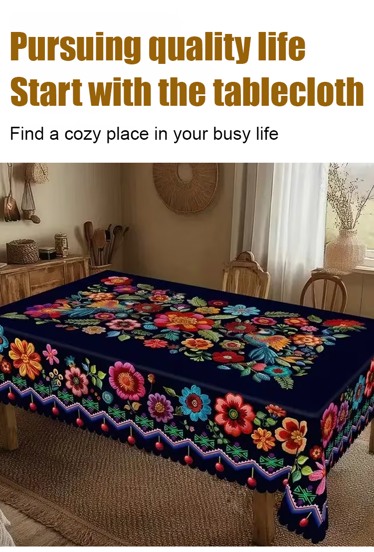 Mexican-style vibrant colorful floral tablecloth