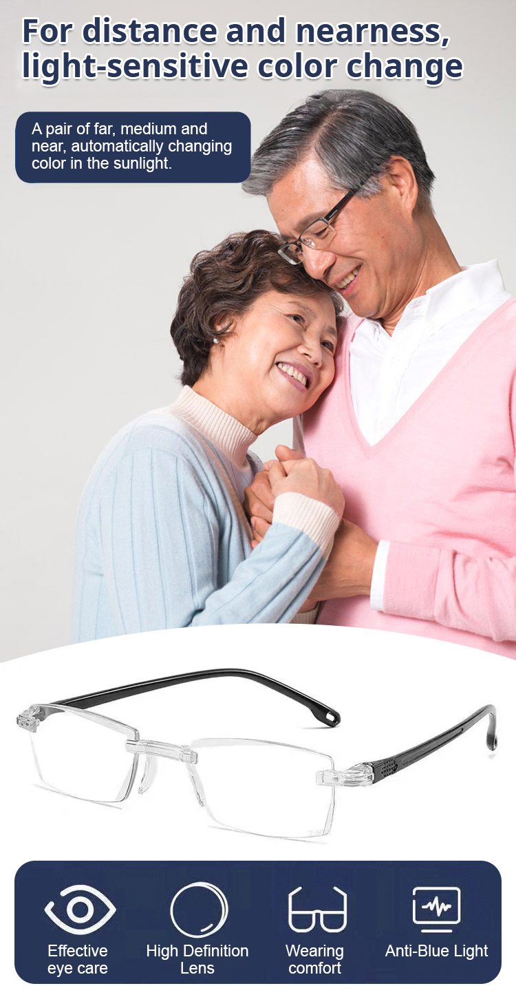 Color-changing anti-blue light presbyopia glasses